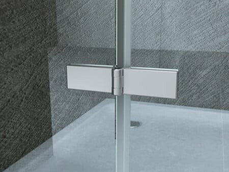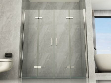 Porta doccia in cristallo con apertura a libro centrale
