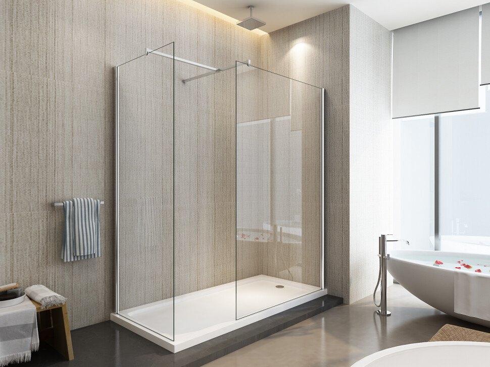 Le pareti Walk In con braccio a T di congiunzione trasmettono un'idea di comfort ed eleganza, donano all’ambiente bagno una maggiore luminosità senza dare la minima sensazione di ingombro.