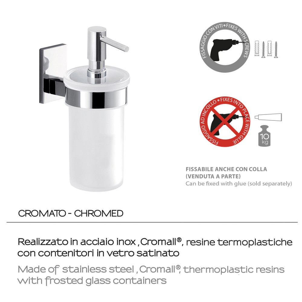 Il tuo ordine verrà preparato e affidato al corriere entro i giorni lavorativi indicati, a partire dalla data di conferma dell'ordine. Riceverai un numero di tracciamento per monitorare lo stato della spedizione.Scopri i vantaggi esclusivi di Dosasapone Maine Cromato. Questo articolo non solo risponde alle tue esigenze pratiche, ma arricchisce l'esperienza d'uso grazie a materiali di prima scelta. Dosasapone Maine cromato. Realizzato in acciaio inox,cromall e vetro satinato. Dimensioni: h 16,8 x l 6,9 x p 11 cm. Peso: 0,47 kg. Capacità: 200 ml. Fissabile con viti(incluse) o colla(venduta a parte). Peso massimo supportato 10 kg. Placca reversibile. Anni di garanzia: 10.