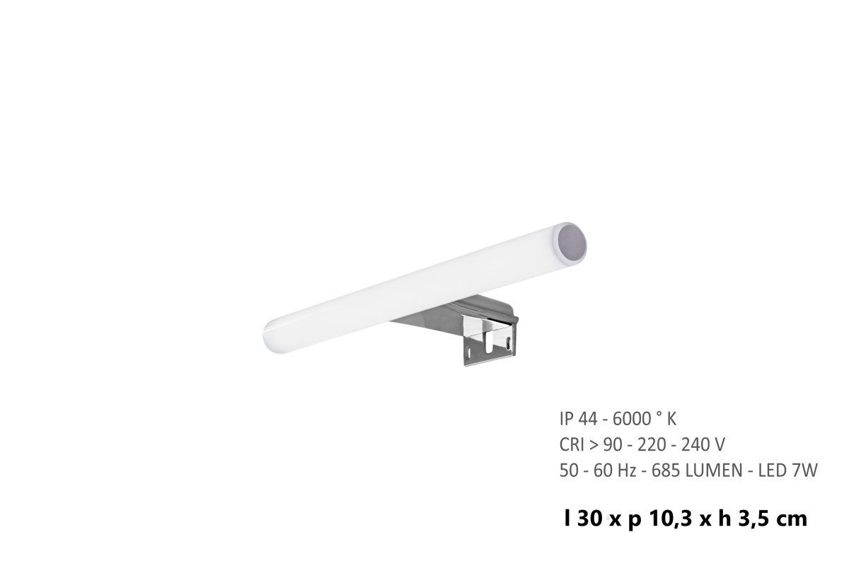 Il tuo ordine verrà preparato e affidato al corriere entro i giorni lavorativi indicati, a partire dalla data di conferma dell'ordine. Riceverai un numero di tracciamento per monitorare lo stato della spedizione.Scegli Lampada Led 7w 30cm Kos Cromato per assicurarti comfort e funzionalità senza compromessi. È la soluzione ideale per chi cerca qualità superiore e un utilizzo intuitivo. Lampada a led con telaio di fissaggio Kos 30 cm cromo. Realizzata in resine termoplastiche. Dimensioni: h 3,5 x l 30 x p 10,3 cm. Peso: 0,110 kg. Per specchi con e senza cornice. 220-240 V - 50-60 Hz. LED 7W - IP44 - CRI>90. 6000°K. 685 LUMEN.Anni di garanzia: 2.