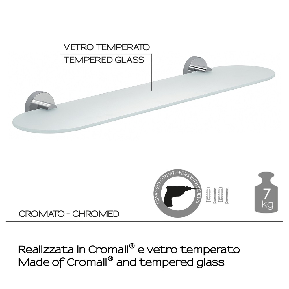 Migliora la tua quotidianità con Mensola Eros Cromato. Progettato per offrire massima efficienza, questo prodotto garantisce risultati eccezionali, unendo praticità e design. Mensola 60 cm Eros cromata. Realizzato in acciaio inox, cromall e vetro temperato. Dimensioni: h 5 x l 60 x p 14,4 cm. Peso: 0,930 kg. Carico testato 7 kg. Fissabile solo con viti(incluse) . Anni di garanzia: 10.