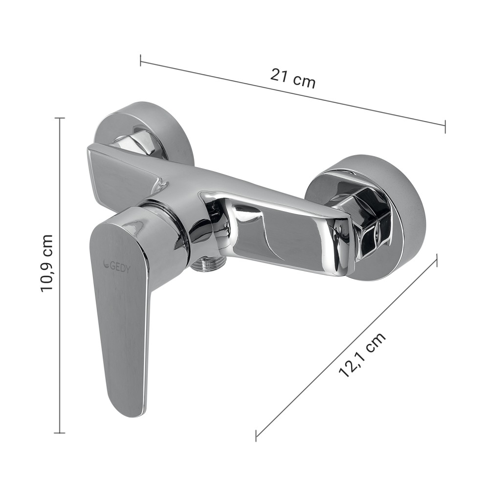 Il tuo ordine verrà preparato e affidato al corriere entro i giorni lavorativi indicati, a partire dalla data di conferma dell'ordine. Riceverai un numero di tracciamento per monitorare lo stato della spedizione.Porta l'innovazione in casa tua grazie a Gedy Miscelatore Esterno Doccia Como. È la soluzione ideale per chi cerca qualità superiore e un utilizzo intuitivo. Miscelatore esterno doccia Como cromo. Realizzato in ottone. Dimensioni: h 10,9 x l 21 x p 12,1 cm. Peso: 0,660 kg. Cartuccia integrata: miscelazione manuale ø 35 mm. Raccordi eccentrici con riduttore: da G 3/4” a G 1/2”. Copri eccentrici: Ø 60 mm. Tipo di installazione: da muro esterno. Connessioni G 1/2”. Interasse arrivi acqua per installazione: 150 ± 20 mm. Non è dotato di accessori doccia. Filtro antisabbia. Anni di garanzia: 5.