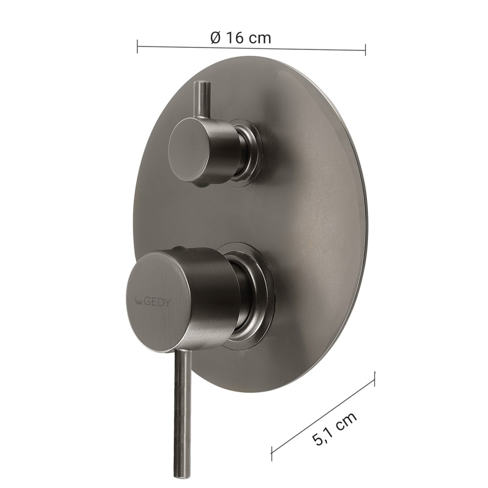 Il tuo ordine verrà preparato e affidato al corriere entro i giorni lavorativi indicati, a partire dalla data di conferma dell'ordine. Riceverai un numero di tracciamento per monitorare lo stato della spedizione.Ottimizza ogni dettaglio del tuo arredamento con Gedy Miscelatore Incasso Doccia con Deviatore Garda. Combina sapientemente linee moderne con una funzionalità avanzata, per soddisfare anche le richieste più esigenti. Miscelatore incasso doccia con deviatore Garda gun metal. Realizzato in acciaio inox AISI 204. Dimensioni: h 16 x l 16 x p 5,1 cm. Peso: 1,6 kg. Miscelatore monocomando a incasso a 2 via. Cartuccia: miscelazione manuale ø 35 mm. Cartuccia deviatore: ø 22 mm. Disco di copertura: spessore 2 mm. Scocca: corpo esterno di incasso a muro. Copri scocca di protezione: con livella integrata per facilitare l’istallazione. 4 viti con tasselli. Tipo di installazione: da muro ad incasso. Connessioni G 1/2”. Profondità minima per l’incasso: 73 mm . Dimensioni minime per la scocca a muro: 100 x 160 mm. Non è dotato di accessori doccia. Filtro antisabbia. Anni di garanzia: 5.