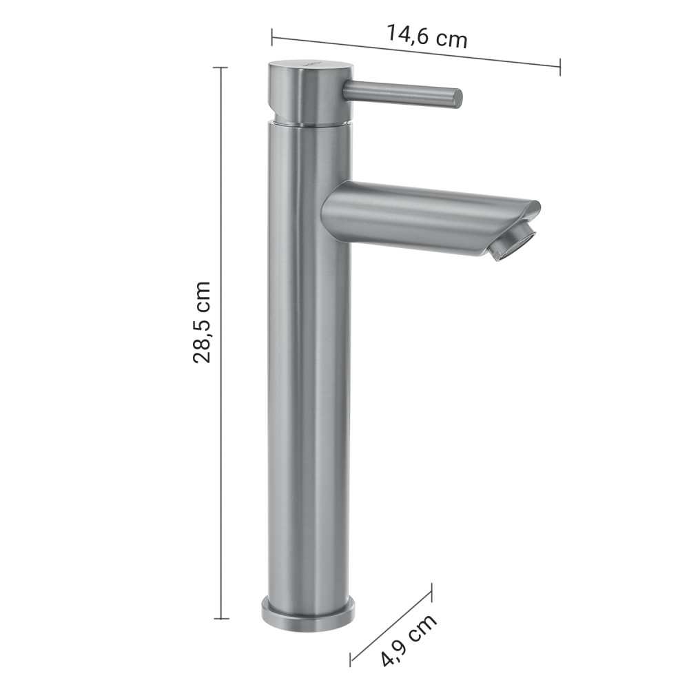 Il tuo ordine verrà preparato e affidato al corriere entro i giorni lavorativi indicati, a partire dalla data di conferma dell'ordine. Riceverai un numero di tracciamento per monitorare lo stato della spedizione.Ottimizza ogni dettaglio del tuo arredamento con Gedy Miscelatore Lavabo Alto Garda. Realizzato con estrema cura per i dettagli, rappresenta il connubio perfetto tra estetica e performance. Miscelatore lavabo alto Garda spazzolato. Realizzato in acciaio inox AISI 304. Dimensioni: h 28,5 x l 4,9 x p 14,6 cm. Peso: 0,840 kg. Cartuccia integrata: miscelazione manuale ø 35 mm. Tubo filettato con dado di serraggio per istallazione. 2 Tubi flessibili di connessione acqua calda e fredda, lunghezza 50 cm con connessioni lato miscelatore G 1/8” maschio e connessioni lato arrivi acqua G 3/8” femmina . Bocca di erogazione: fissa. Tipo di installazione: da appoggio. Spessore massimo supporto di installazione: 35 mm. Filtro antisabbia. Anni di garanzia: 5.