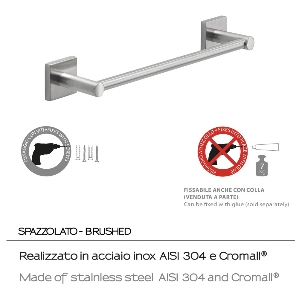 Il tuo ordine verrà preparato e affidato al corriere entro i giorni lavorativi indicati, a partire dalla data di conferma dell'ordine. Riceverai un numero di tracciamento per monitorare lo stato della spedizione.Scegli Portasalviette 30 Cm Fuji Spazzolato per assicurarti comfort e funzionalità senza compromessi. È la soluzione ideale per chi cerca qualità superiore e un utilizzo intuitivo. Portasalviette 35 cm Fuji spazzolato. Realizzato in cromall e acciaio inox AISI 304. Dimensioni: h 4,7 x l 34,1 x p 6,9 cm. Peso: 0,285 kg. Barra accorciabile. Carico testato fino a 7 kg. Fissabile con viti(incluse) o con colla(venduta separatamente). Anni di garanzia: 15.