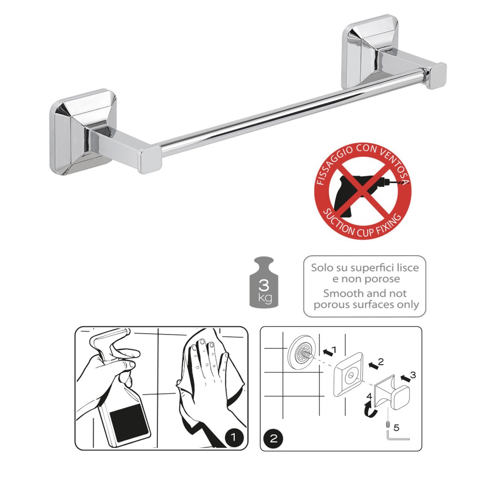 Il tuo ordine verrà preparato e affidato al corriere entro i giorni lavorativi indicati, a partire dalla data di conferma dell'ordine. Riceverai un numero di tracciamento per monitorare lo stato della spedizione.Migliora la tua quotidianità con Portasalviette 35 Cm Ventus Cromato. Progettato per offrire massima efficienza, questo prodotto garantisce risultati eccezionali, unendo praticità e design. Portasalviette 35 cm Ventus cromo. Realizzato in acciaio inox e abs. Dimensioni: h 6 x l 36 x p 8,4 cm. Peso: 0,159 kg. Lunghezza della barra modificabile. Carico testato fino a 3kg. Fissabile con ventosa . Anni di garanzia: 10.