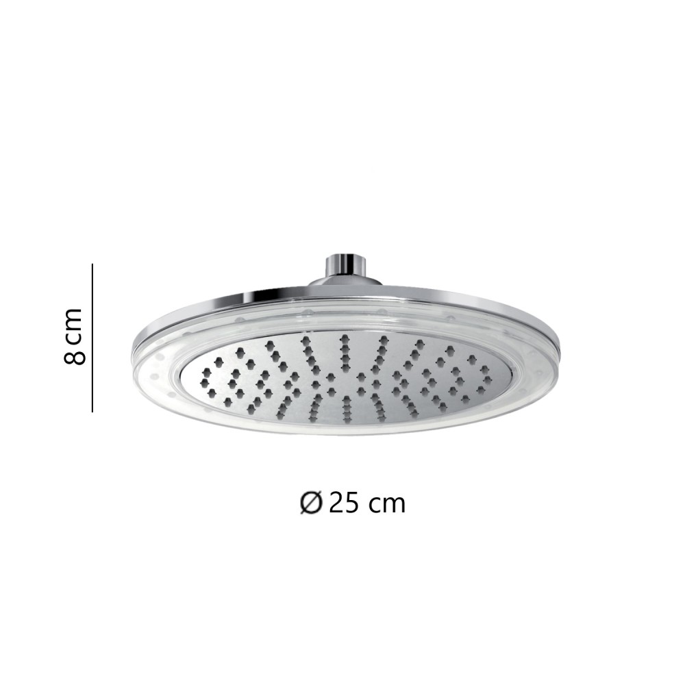 Il tuo ordine verrà preparato e affidato al corriere entro i giorni lavorativi indicati, a partire dalla data di conferma dell'ordine. Riceverai un numero di tracciamento per monitorare lo stato della spedizione.Ottimizza ogni dettaglio del tuo arredamento con Gedy Soffione 25 cm Led 1 Getto Light 03. Questo articolo non solo risponde alle tue esigenze pratiche, ma arricchisce l'esperienza d'uso grazie a materiali di prima scelta. Soffione doccia Light 03 cromo. Realizzato in acciaio inox, ottone e ABS. Dimensioni: h 8 x l 25 x p 25 cm. Peso: 0,690 kg. 1 getto, 7 colori LED con cambio automatico a sequenza , diametro 25 cm, connessione da 1/2". Pulizia facile, risparmio idrico 50% e filtro antisabbia. Anni di garanzia: 5.
