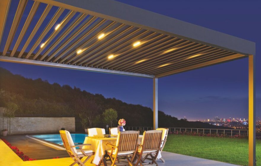 Le lamelle del tettuccio prevedono dei led integrati nei profili della lamella offrendo una soluzione ecologica ed economica nelle ore serali.