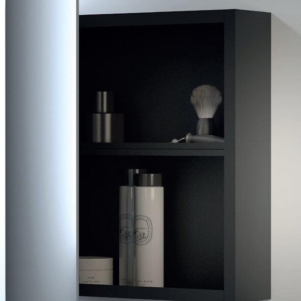L’apertura a 90° garantisce un accesso pratico e confortevole, rendendolo ideale anche per spazi compatti. Il design verticale valorizza la parete e dona profondità all’ambiente, mantenendo un equilibrio perfetto tra estetica minimal e funzionalità contenitiva.