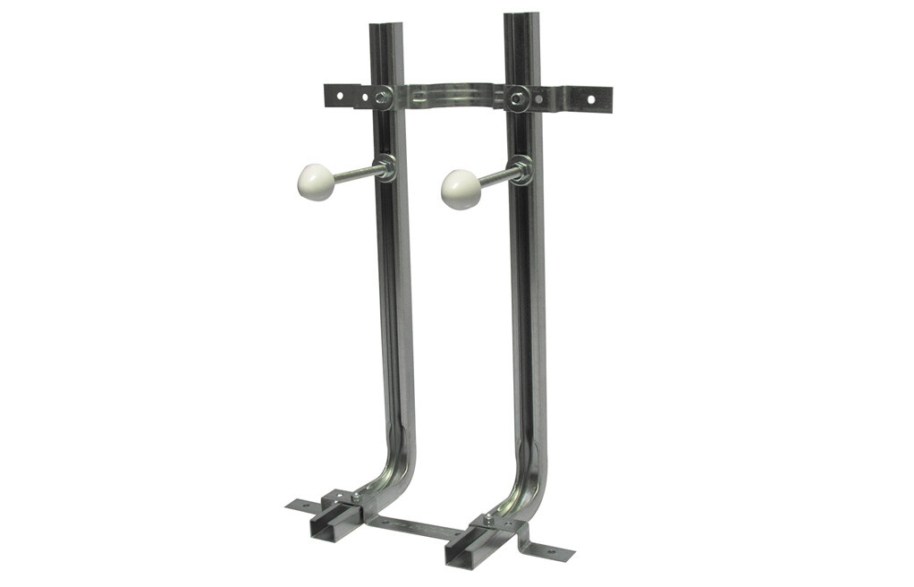 Il sistema è già preassemblato con interasse mm 180 e con rapida regolazione per mm 230, altezza mm 600, profondità mm 200; in acciaio zincato, con alloggiamento per tubo di scarico verticale della cassetta di risciacquo; fori per ancoraggio sia a parete che a pavimento.